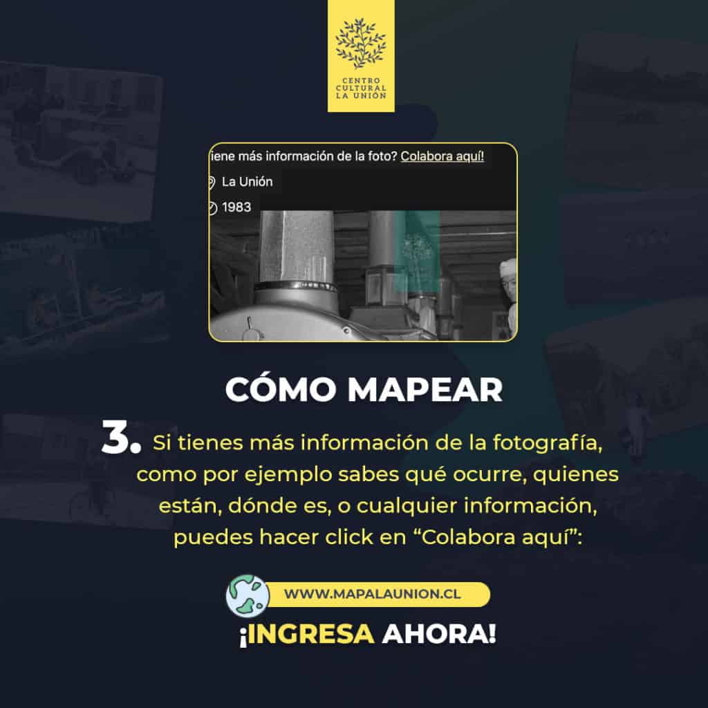 Sistema participativo de documentación y georeferenciación online mapalaunion.cl Lanzamiento del sistema de mapeo participativo colectivo de La Unión a través del sitio web www.mapalaunion.cl.
