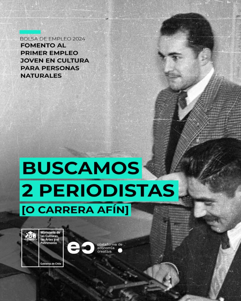 Convocatoria para profesionales y técnicos recién egresados.Iniciativa financiada por la convocatoria pública de apoyo para el fomento al primer empleo en cultura 2023 del Ministerio.