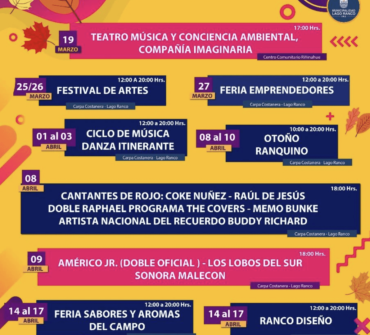 La Municipalidad de Ranco invita a toda la comunidad y a los visitantes, a disfrutar de los diferentes panoramas del “Otoño Ranquino”.