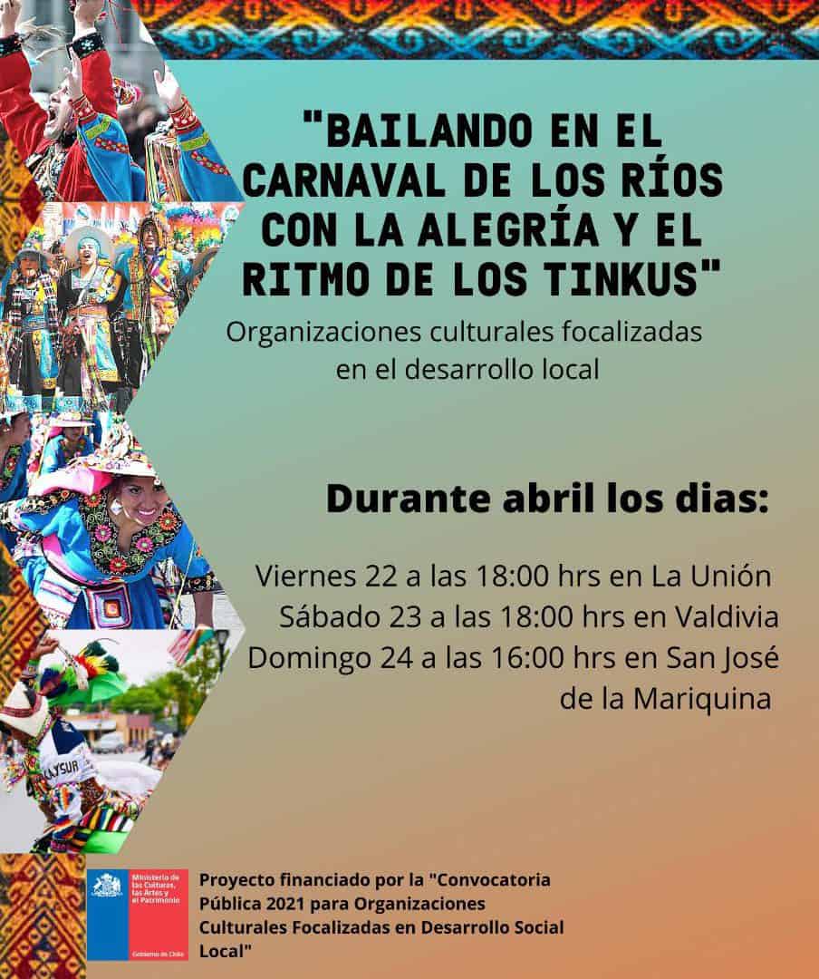 Los invitamos a ser parte del Bailando en el Carnaval de Los Ríos con la Alegría y el Ritmo de los Tinkus.